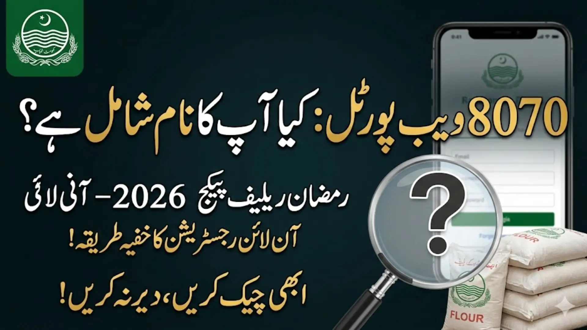 8070 ویب پورٹل 2026 حکومت کی جانب سے متعارف کرایا گیا ایک ڈیجیٹل پلیٹ فارم ہے جس کا مقصد مستحق خاندانوں کو رمضان ریلیف اور مفت آٹا اسکیم تک آسان رسائی فراہم کرنا ہے۔ اس نظام کے ذریعے شہری اپنے شناختی کارڈ نمبر کی مدد سے گھر بیٹھے اپنی اہلیت چیک کر سکتے ہیں۔ اس پورٹل کو جدید ڈیٹا بیس سے منسلک کیا گیا ہے تاکہ امداد صرف حقیقی حقداروں تک پہنچے اور کسی قسم کی بدعنوانی یا سفارش کا عمل ختم ہو سکے۔