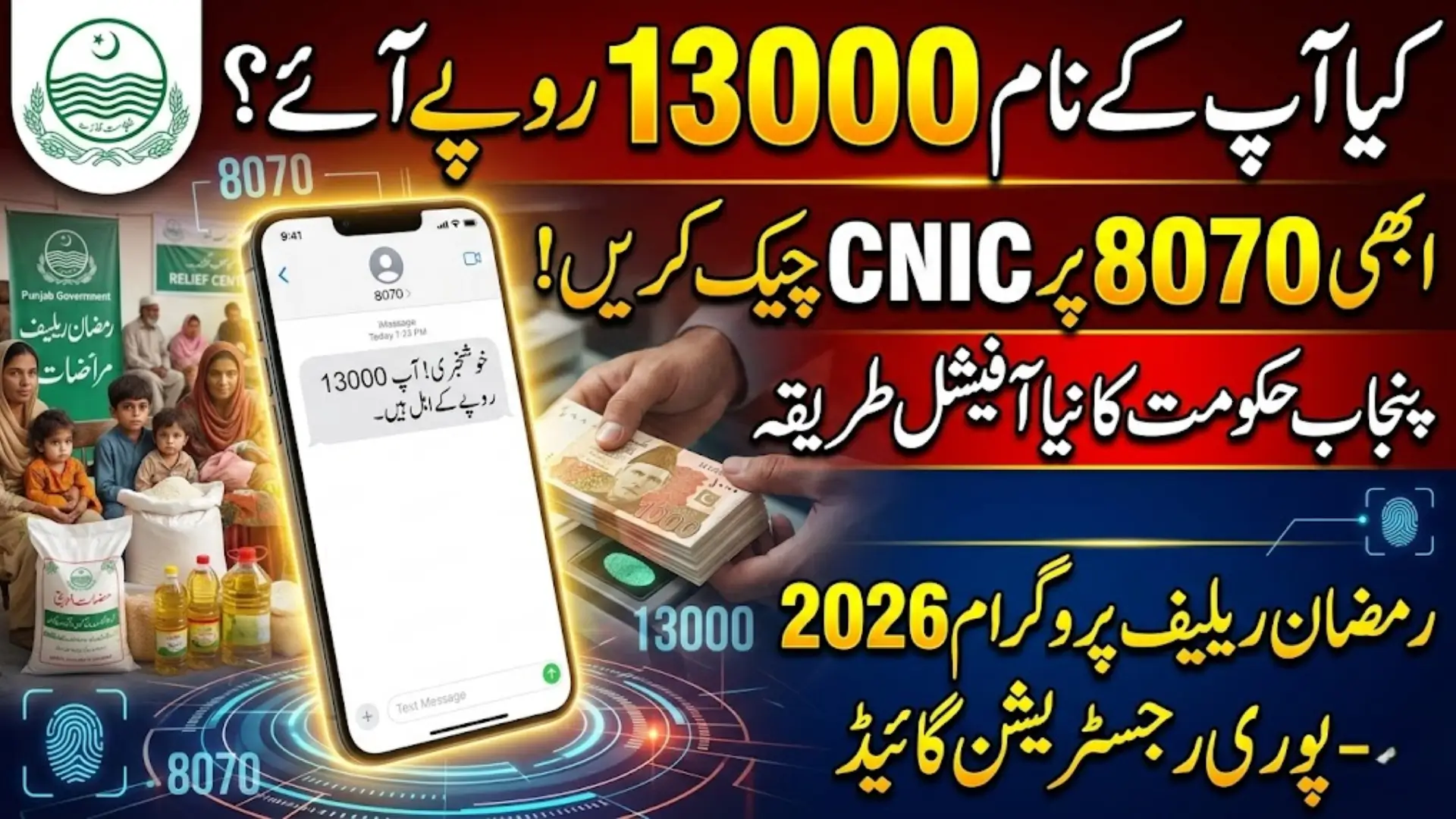 The 8070 Ramzan Relief Program 2026 is part of the Punjab government’s welfare initiative aimed at supporting millions of families struggling with rising living costs. Under this program, eligible households can receive financial assistance of Rs 13,000 along with essential ration items that help cover basic food needs during Ramzan. The program operates through digital registration systems and CNIC-based verification.