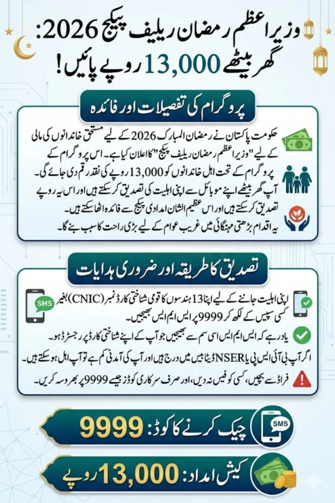You Can Also Read: 9999 PM Ramzan Relief Package 2026 – CNIC Check, Eligibility, PKR 5,000 Cash & Rashan Support Guide