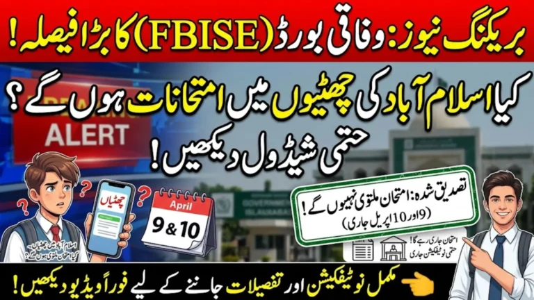 FBISE Exams Schedule April 2026 – Exams to Continue Despite Islamabad Holidays Full Update
