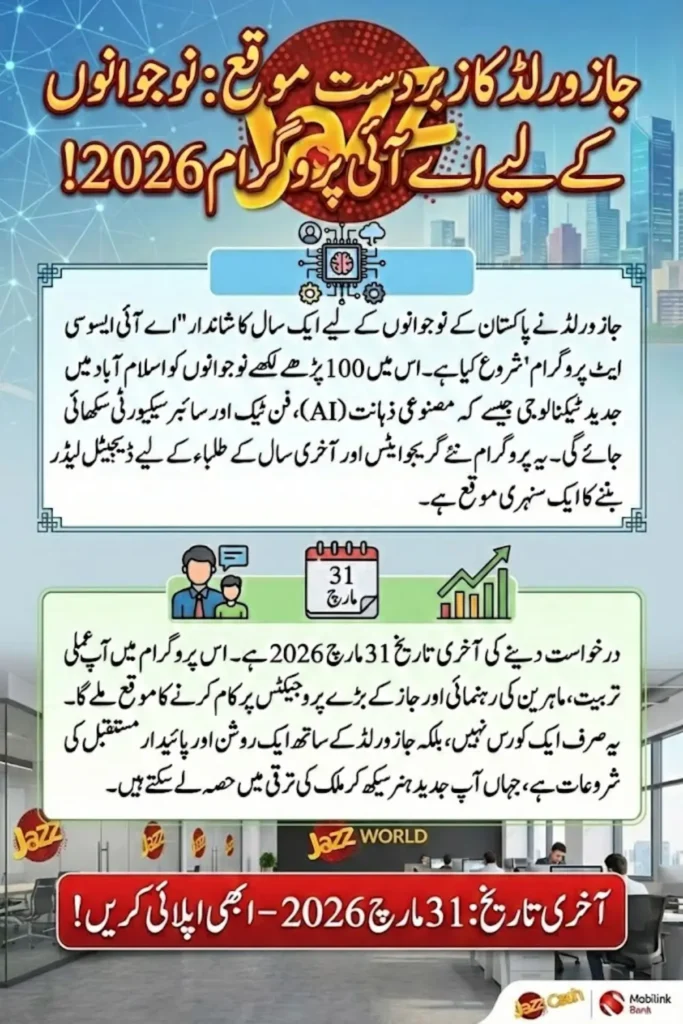 You Can Also Read: JazzWorld AI Associate Program 2026: 100 AI-First Career Opportunities for Graduates in Pakistan