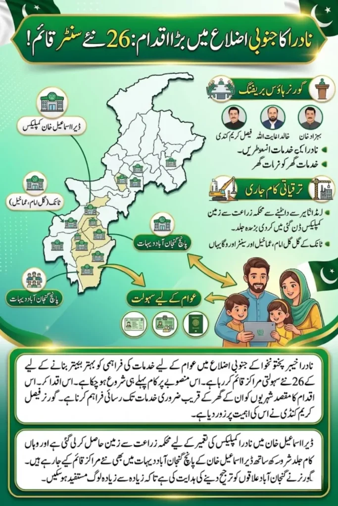 Officials also confirmed that additional centers will be developed in five densely populated villages of Dera Ismail Khan. These centers will help residents access services within their own communities, reducing travel time and making administrative processes more convenient for local families.