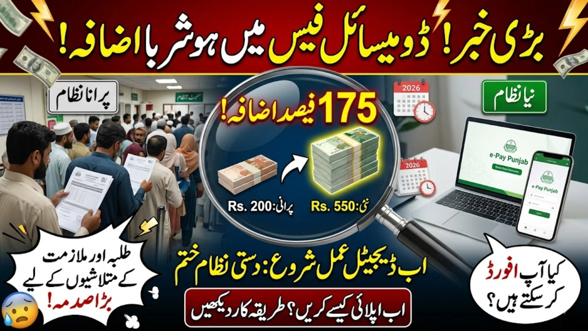 Punjab Govt raises domicile certificate fee alongside the introduction of mandatory digital payments through e-Pay Punjab. This system removes the need for cash payments and ensures all transactions are recorded electronically.
